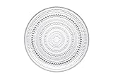 The Kastehelmi 6-3/4-inch plate has a versatile design allowing it to be used in casual and formal settings. Designed by Professor Oiva Toikka. Kastehelmi - which is Finnish for "dewdrop" - evolved from a technical challenge when Toikka started using glass droplets to cover joint marks left on the surface of pressed glass pieces. The result was a popular range of glassware decorated with beads of glass that glisten like dewdrops in the morning sun. Professor Oiva Toikka is one of the most renowned names in Finnish glass art. His style deviates from the streamlined aesthetic of Scandinavian design in imaginative, rich and bold ways, earning him international praise. He has won some of the most prestigious design awards in the world, including the Lunning Prize, Pro Finlandia Medal, World Glass Now 85 Award, Kaj Franck Design Prize and the Prince Eugen Medal. Plate is dishwasher safe. Clear. By Iittala.
