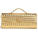 NEWBELLA Women's Handmade Woven Clutch Purse - PU Leather Crossbody Bag for Evening & Casual, Adjustable Shoulder Strap Fashion Handbag (Gold)