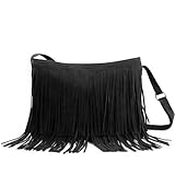 HOXIS Tassel Faux Suede Leather Hobo Cross Body Shoulder Bag Womens Sling Bag (Black1)
