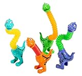Set of 4 Cute Dinosaur Neck Pull and Pop Snap Animal Expanding Flexible Accordion Tube Toy - Free Play - Open Ended Fidget Toy Dino (Set of All 4 Colors)
