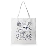 KAOWT Ocean Beach Tote Bag for Women, Nautical Beachy Canvas Tote Bag, Ocean Lover Gifts, Marine Biology Sea Animal Reusable Shopping Grocery Bags