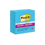 Post-it Super Sticky Notes, 5 Sticky Note Pads, 3 x 3 in., School Supplies, Office Products, for Vertical Surfaces, Monitors, Walls and Windows, Blue Paradise