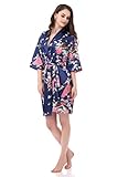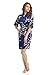 J.ROBE Women's Printing Lotus Kimono Robe Short Sleeve Silk Bridal Robe Navy XL