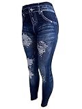 CLOYA Women's Denim Print Seamless Full Leggings for All Seasons - One Size Fits Large & X-Large (Blue Rustic)