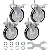 Stem Leveling Casters Wheel with Ratchet Handle Set of 4 Height Adjustable Caster, 1/2 Inch and M12 Stem Size, Total Load 2200 Lbs Heavy Duty Industrial Retractable Casters for Workbench, Machine