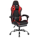 Home Office & Study Chair with Massage Function, Ergonomic Racing Style Seat for All-Day Comfort, PU Leather with Supportive Molded Foam (Black+Red)