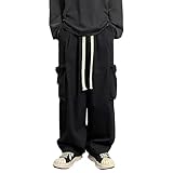 Mens Street Fashion Oversized Cargo Pant Cotton Lounge Trouser for All Seasons Stretch Athletic Pants (Black,Large)