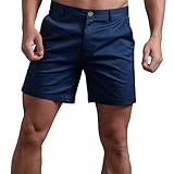 Mens All Cotton Buckle Short Above Knee Simple Slim Fit Shorts Straight Leg Skinny Stretch Short (Dark Blue,Large)