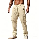 Men's Running Pants Lightweight Joggers Athletic Pants with Pockets Solid All-Match Athletic Cargo Stretch Sweatpants Beige
