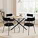 KATBOC 36" Round Dining Table Set for 4, Small Round Kitchen Table with 4 Boucle Dinner Chairs, Modern Circle 5 Piece Glass Dining Table with Metal Legs(All Black)
