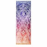 Fixed rope shoulder strap, exterior adjustable side straps to hold yoga mat, main compartment with snap closure, internal mesh water bottle pocket and organizational pockets. Dimensions: 14" x 16" x 5".