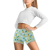 Pwnixequ Yoga Shorts for Girls Pineapple Flowers Print Stretchy Athletic Bike Shorts Volleyball All-Day Comfort Compression Pants with Shirts Sunglasses