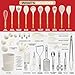 Kaluns 50 PCS Silicone Kitchen Utensils Set Complete Kitchen Set - 800°F Heat Resistant Non-Stick Premium Cooking Utensils W Wooden Handles - Can Opener, Masher, Turner, Silicone Spatula Set