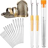 Kenkio 4 Pieces Gourd-Shaped Needle Threaders with Instruction and 30-Count Assorted Hand Sewing Needles Set