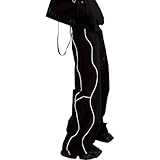 Mens Street Style Floor Length Pants Relaxed Fit Comfy Leisure Pant Going Out Fun Trousers for All Seasons (Black,Large)