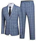 WEEN CHARM Men's 2 Piece Slim Fit Plaid Suit Business Casual Blazer Pants Set for Formal Wedding Prom Office Party Blue Gray
