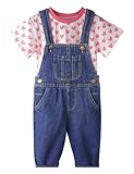 CHUMHEY Baby Girls 2 Pieces Outfits, Love Heart Printed Cotton Crewneck Summer T-Shirt Denim Overalls, White&Blue, 12M