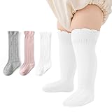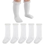 MKYSZLT Baby Girl Knee High Socks Newborn Infant Toddler Cotton Lace Ruffle Long Socks Tall Stockings Dress Sock 0-24 Months (US, Age, 0 Months, 6 Months, all white)