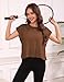 Kumufenc Womens Oversized Tshirts Open Back Batwing Sleeve Gym Shirts Boat Neck Slouchy Tees Workout Athletic Top(Coffee,L)