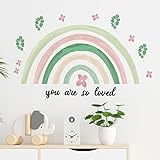 Containlol Rainbow Wall Decals, Playroom Wall Decor for Girl Room, Watercolor Peel and Stick Wallpaper, Boho Wallpaper 30 x 14 Inch Heart Art Stickers for Toddler Bedroom Nursery(Green,Fresh)