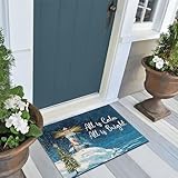 Liora Manne ESENCIA Indoor/Outdoor Power Loomed Latex Back Non Slip Mat - Traditional Graphic Coastal Ocean Welcome (All is Calm Night) (2' x 2'10")