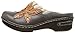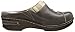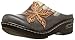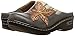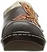 Hand painted leather, open-back clog with textile piecing and leather floral applique.
