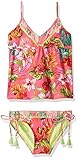 Hobie Girls' V-Neck Tankini Swimsuit Top and Side Tie Bikini Bottom Set, Bright Pink//Flor/All Orange Nothing, 8