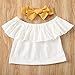 LXXIASHI 3PCS Toddler Baby Girl Off Shoulder Ruffle Crop Top + Maxi Long Skirt + Headband Outfits Set (White Yellow, 4-5 Years)