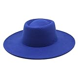 9.5CM Big Wide Brim Fedora Hat for Women Fashion Autumn Winter Felt Church Hats Wedding Dress Jazz Cap Royal Blue 57-59CM