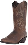 Take a walk in a pair of Laredo cowboy boots - you'll be surprised at the level of comfort for the price The Laredo Hawk cowboy boot features a genuine leather foot under a fancy stitched 12" manmade leather shaft. Cowboy heel with rubber grip surface. Welted construction. EW, Extra Wide, equals EE width.