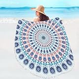 Violet Mist Purple Mandala Round Beach Blanket 60" Hippie Boho Microfibre Beach Towel Throw with Fringe Large Sand Free Circle Beach Blanket with Tassels for Women Travel Swimming Pool Picnic Towel
