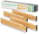 BAMEOS Drawer Dividers kitchen Organization Bamboo Utensil Organizers for Kitchen Bedroom Bathroom Dresser Office 4-pack