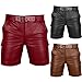 Leather Shorts for Men's Retro Cargo Shorts with Pockets Solid Color Party Biker Short Button Fly Fashion Short Wine XL