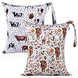 eaxin 2pcs Cloth Diaper Wet Dry Bags Waterproof Reusable with Two Zippered Pockets Travel Beach Pool Stroller Daycare Soiled Baby Items Yoga Gym Bag for Swimsuits or Wet Clothes - Highland Cow