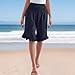 Linen Shorts for Womens Summer Fashion Flowy Ruffle Bottom Knee Length Short Pants High Rise Tummy Control Shorts Navy Large