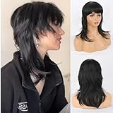 Liyouda Mullet Wolf Cut Wig with Bangs Layered Black Mullet Wig Short Synthetic Mullet Wigs for Black Women Daily Party Cosplay Use