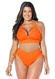 Swimsuits For All Loop Strap Halter High Waist Side Tie Bikini Set - Papaya, Papaya