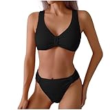 All Cyber Deals Womens Bikini Swimsuits 2 Piece Solid High Waisted Full Coverage Push up Bathing Suit High Cut Texture Beach Swimwear Bikinis Sets for Women