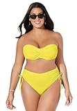 Swimsuits For All Valentine Ruched Bandeau High Waist Side Tie Bikini Set - Pineapple, Pineapple