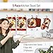 - 5 piece kitchen set includes two decorative dish towels (25 in x 15 in), one oven mitt (11 in x 7 in), and two square potholders (6.5 in x 6.5 in) for everyday household kitchen use.