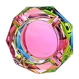 Kaforise Heavy K9 Crystal Ashtray for Cigarettes – Cool Color-Changing Glass Ash Tray for Outdoor Patio & Home Decor – Fancy Geometric Tabletop Accessories, Unique Luxury Gift for Men Smokers (02)