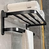 BOZWELL Bathroom Lavatory Towel Rack with Two Towel Bars,24-Inch Towel Holder with Shelf BZ205-A (Matte Black)