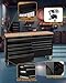 - LARGE STORAGE SPACE: This 61-inch rolling tool chest with wheels comes with 15 drawers (6 large and 9 small). It has an 18-inch deep wooden top which provides a spacious working table, and can be used to organize your daily used tools.