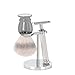 Chrome finish shaving set stand suitable for MÜHLE safety razors, straight razors, Mach3 razors, Fusion razors and a wide range of MÜHLE shaving brushes.