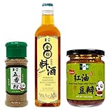 NPG Authentic Chinese Five Spice Blend 1.05 oz, Shaoxing Cooking Wine 33.81 Fl Oz, and Sichuan Pixian Broad Bean Chili Paste with Red Chili Oil 7 Oz