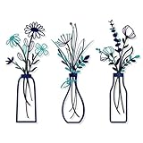 3 Pieces Metal Flowers Wall Arts - Rustic Farmhouse Style Décor Metal Wall Art Black Minimalist Flower Natural Themed Wall Decors for Home Bedroom Dining Room Housewarming (Blue)