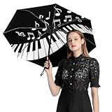 Meaudiwes Fashion Windproof Folding Travel Umbrella Unisex Compact Automatic Open Close Piano Keys with Musical Notes Black And White