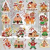 HOWAF 30pcs Christmas Gingerbread Hanging Swirl Decorations, Merry Christmas Candy Gingerbread Man Foil Hanging Streamer Gingerbread House Swirls Ceiling for Christmas Tree Xmas Holiday Party Supplies