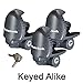 • This is a set of 3 Keyed Alike trailer coupler/tongue locks and is ideal when needing multiple locks that utilize ONLY one key. The same key opens all three locks. Each lock comes with two keys, therefore you will receive a total of six keys with the purchase of this 3 pack. Limited Lifetime warranty.