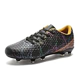 WILTENA Womens Comfy Soccer Cleats Mens Low Top Firm Ground Football Shoes Girls Boys Fashion Outdoor Football Sneakers Black Size 8w/6.5m